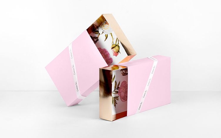 當創(chuàng)建包裝時,利用你能利用的空間。上圖盒子包裝的內(nèi)部使用了漂亮的花卉圖案。這種設(shè)計讓盒子看起來更高檔,這反襯出內(nèi)部的產(chǎn)品看起來更高檔。